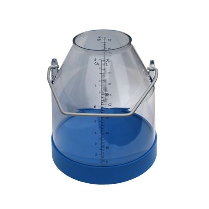 A clear polycarbonate bucket that provides full visibility of milk flow and fill level during milking. This option works with standard lids and includes a sturdy base and locking handle.